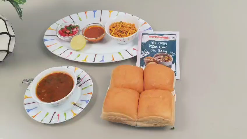 Serve With spicy farsan and garlic chutney with finely chopped coriander and onions.