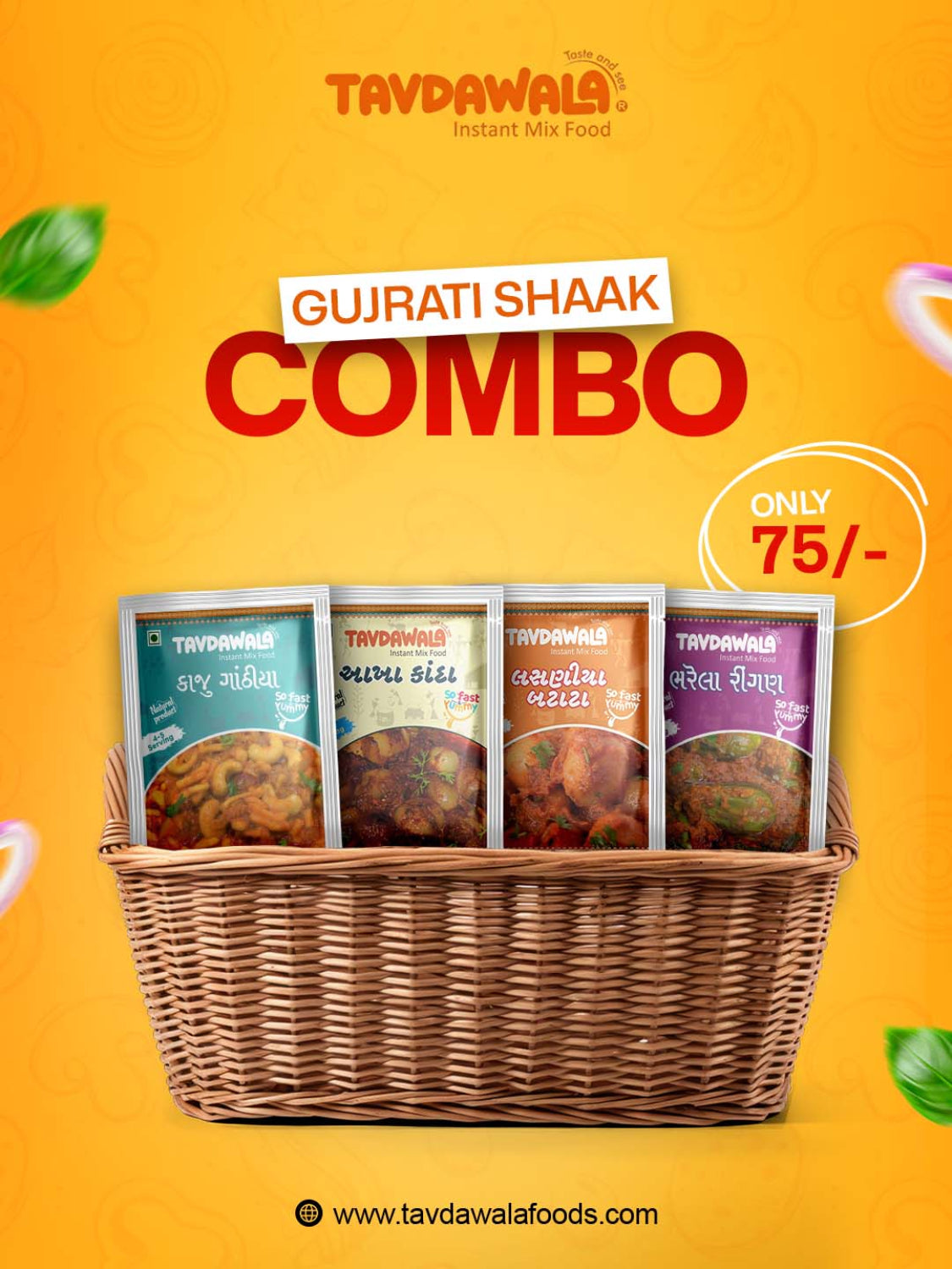 This combo brings the bold flavours of garlic, spices, and homestyle curries — just like a traditional Gujarati thali.