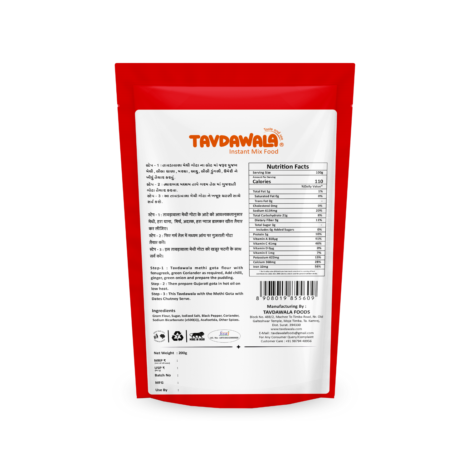 Tavdawala methi gota flour with fenugreek, green Coriander as required, Add chilli, ginger, green onion and prepare the pudding.
